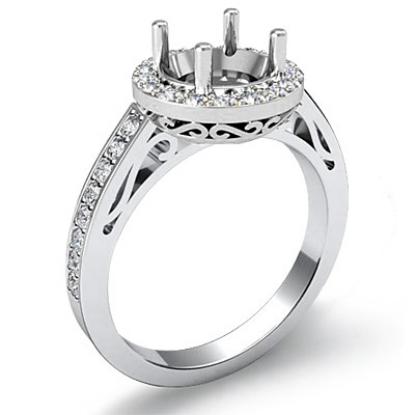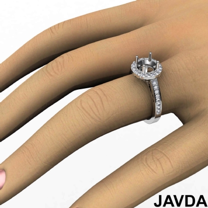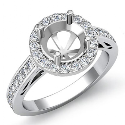 0.8Ct Diamond Engagement Round Ring 14K White Gold Halo Pave Setting Semi Mount