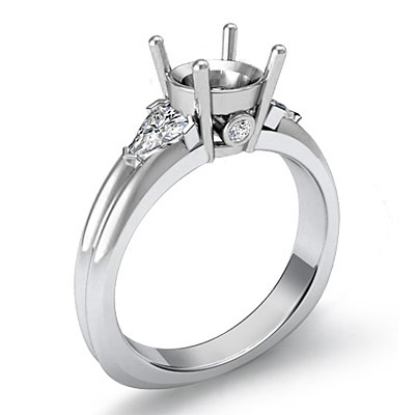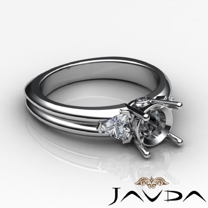 0.60 Carat Trillion Cut Diamond 3 Three Stone Engagement Ring for Round Semi Mount made in 14karat White Gold with 2 Bezeel Set Round diamond In European Shank.