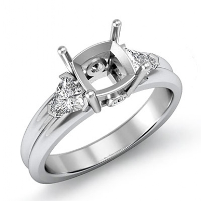 Diamond Engagement Three 3 Stone Trillion Cushion Setting Ring 14k W Gold 0.55Ct
