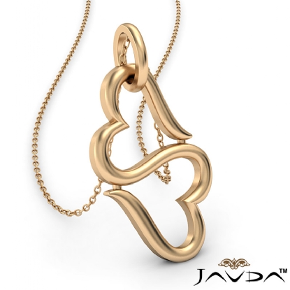 Modern and unique infinity style double open heart pendant necklace made in 14k yellow gold. This polished finished eye-catching heart pendant features 18 inch rolo chain that secures with a spring ring clasp.