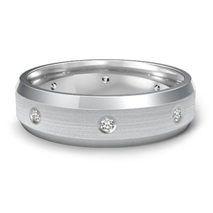 Bevel Edge Brushed Diamond Eternity Men's Wedding Band 14k White Gold 0.15 Ct