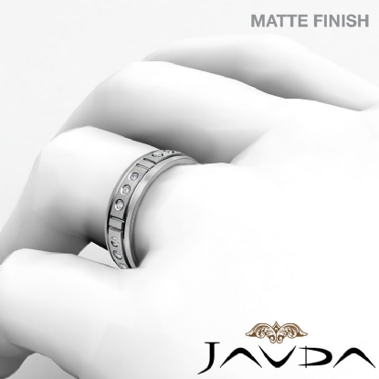 Grooved Matte Finish Diamond Eternity Men's Wedding Band 14k White Gold 0.23 Ct