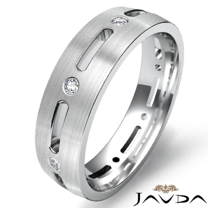 Bezel Set Diamond Cut Eternity Matte Men's Wedding Band 14k White Gold 0.15 Ct