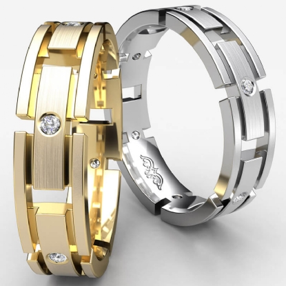 This 0.15 carat total diamond wedding band for him is available in 14k & 18k white gold, yellow gold and rose gold & platinum 950.