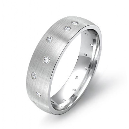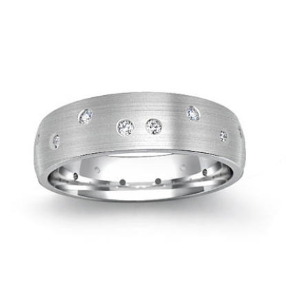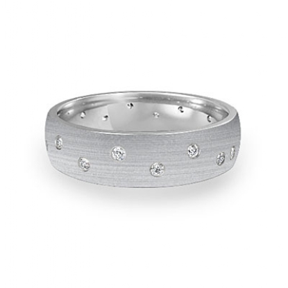 Stunning men's diamond matte finished eternity wedding band made from 14k white gold. Beautifully set 0.25 carat total round diamonds in a gypsy setting. Available in 14k & 18k white gold, yellow gold and rose gold & platinum 950.
