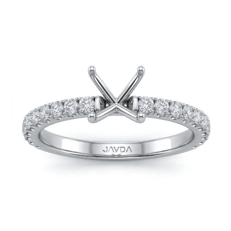 0.75Ct Prong Set Round Diamond Engagement Semi Mount Ring Setting 14k White Gold