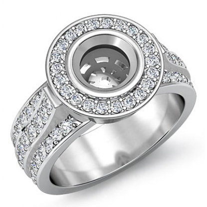 1.65Ct Diamond Engagement Ring Round Semi Mount 14K White Gold Halo Pave Setting