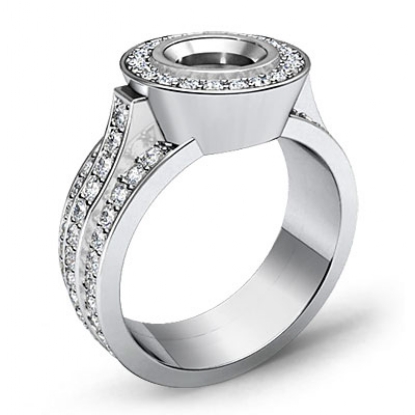 This elegant 1.65 carat round semi mount diamond engagement ring, set in 14 Karat white gold in halo pave setting is sure to grab attention! The center stone can be in set in any diamond of your choice as a bezel semi mount.