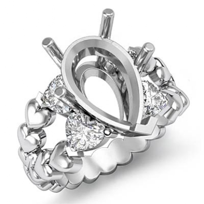 1 Ct Antique Heart & Pear Diamond Engagement Ring Setting 14K Wh Gold Semi Mount