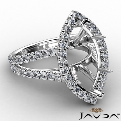 1.05Ct U Split Pave Halo Marquise Semi Mount Diamond Engagement Ring 14K Gold
