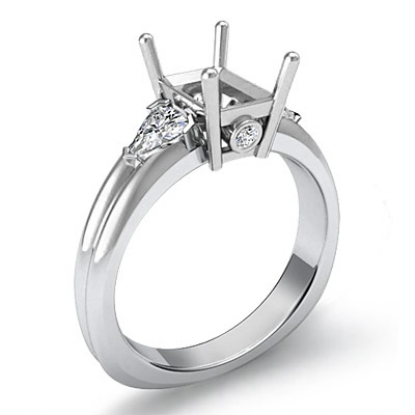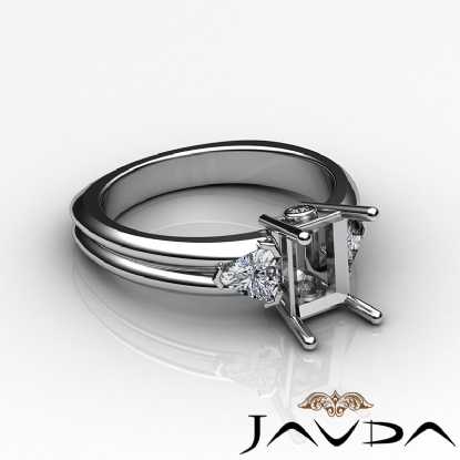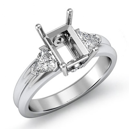 Three Stone Diamond Engagement Trillion Emerald Semi Mount Ring 14k W Gold 0.6Ct
