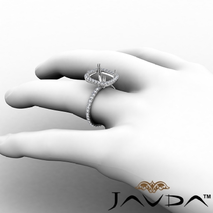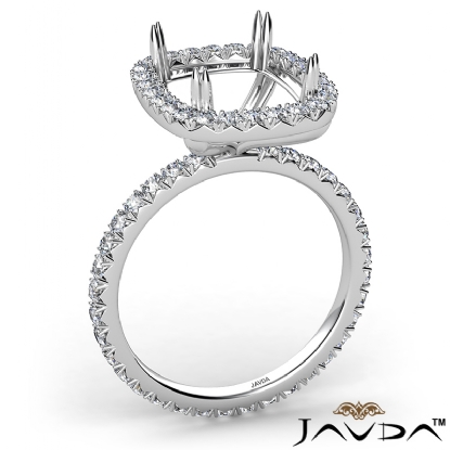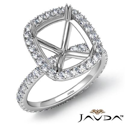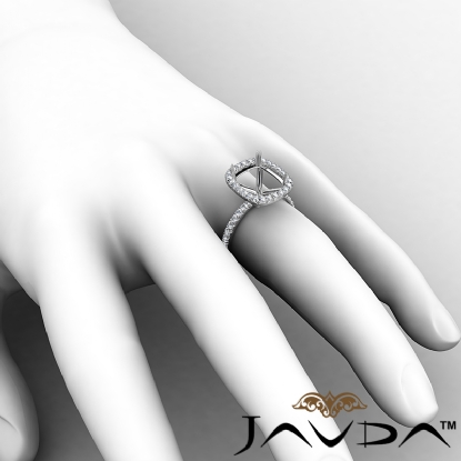 French Cut Pave Halo Cushion Semi Mount Diamond Engagement Ring 14K Gold 0.54Ct