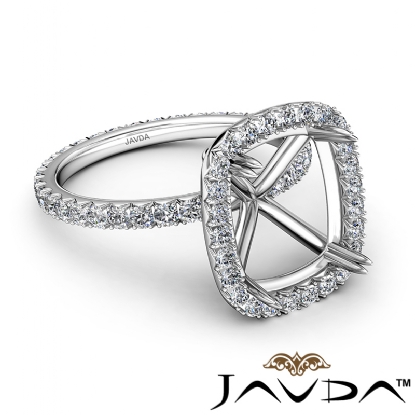 Beautifully crafted, this halo cushion semi mount engagement ring made from 14k white gold. Features 0.54 carat total round diamonds along the shank and halo in a french V cut pave setting.