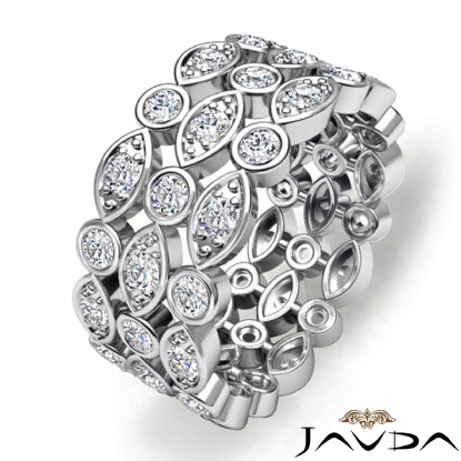 Pave Bezel Diamond Women's Anniversary Eternity Band 14k W Gold 8.7mm Ring 1.3Ct