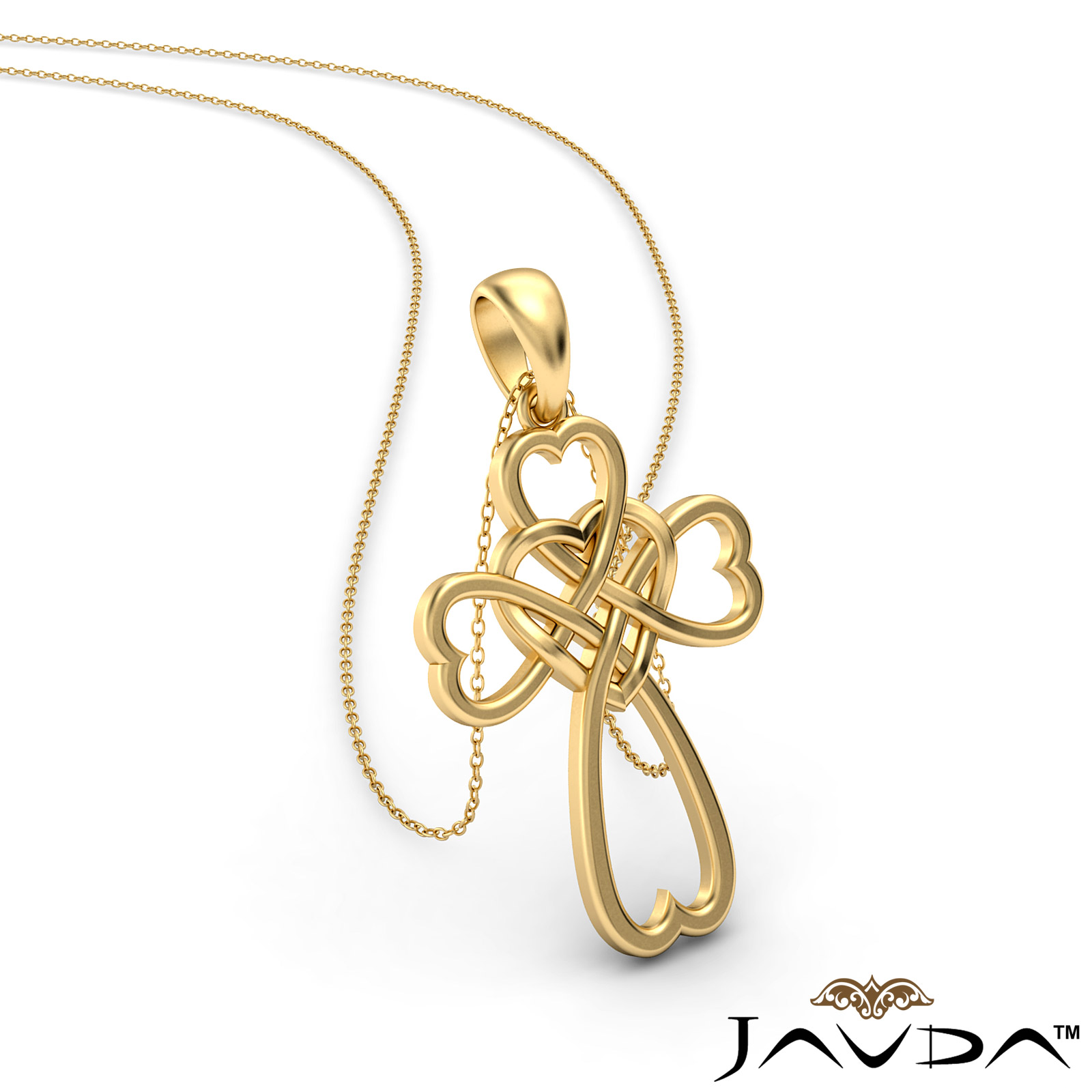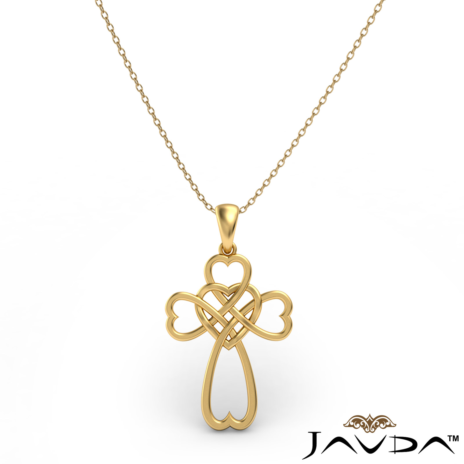 Modern infinity love heart celtic knot gold pendant necklace made in 14k yellow gold. This celtic knot pendant features infinity heart design in a high polished finish hang on 18 inch rolo chain that secures with high polished spring ring clasp.
