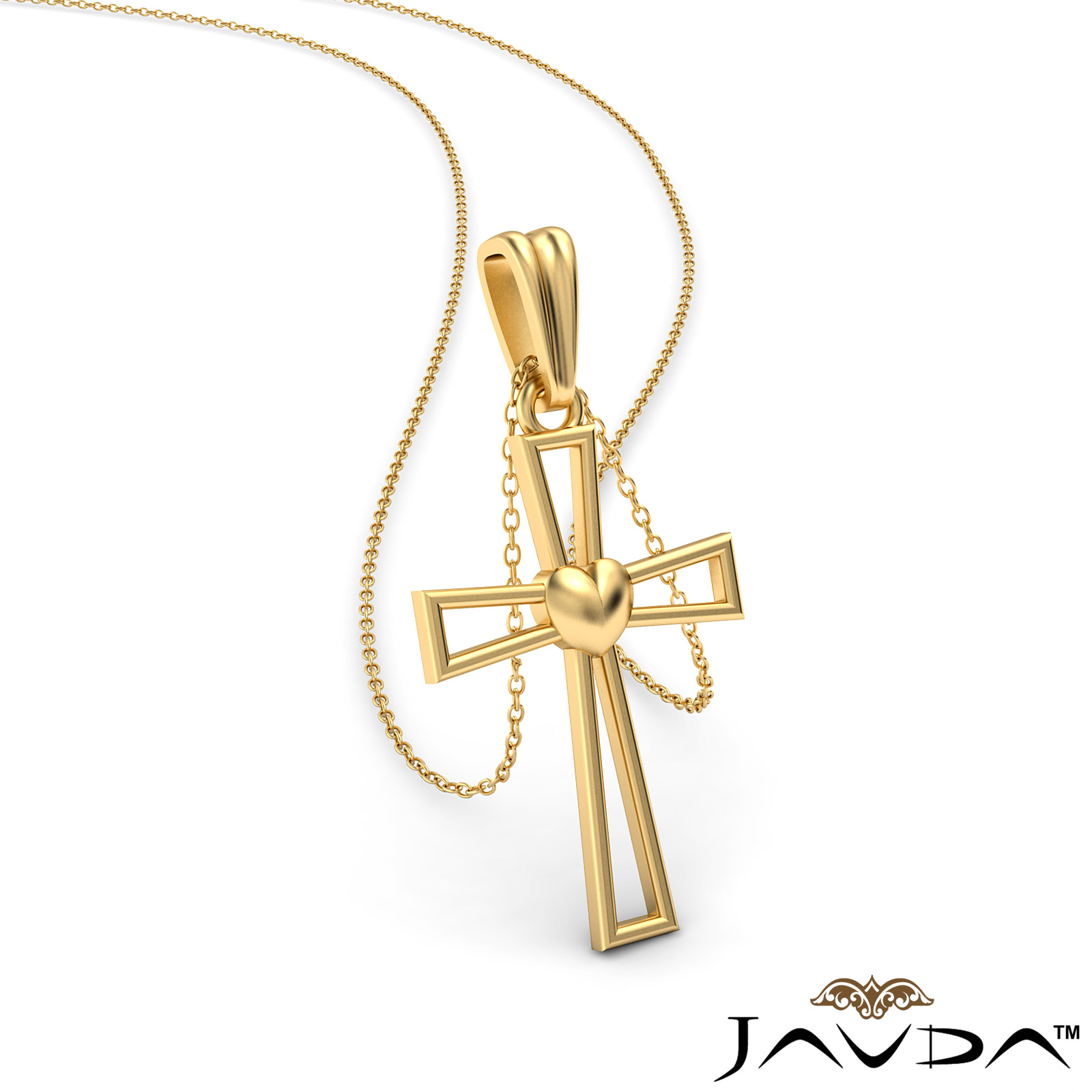 Classic Cross Heart Gold Pendant Necklace 3 Gram 14k Yellow Gold 18" Chain