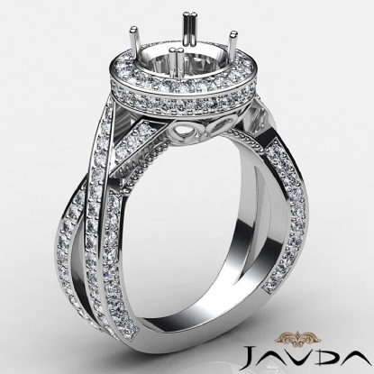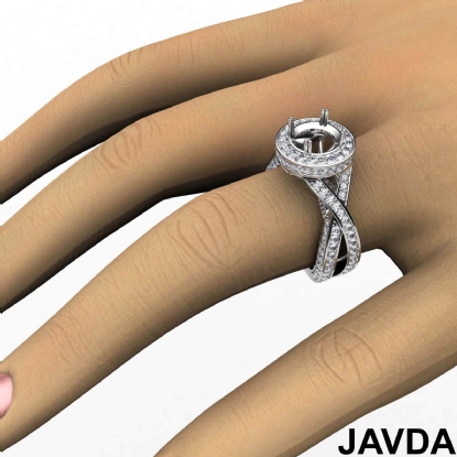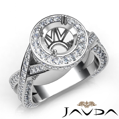 1.5 Ct Diamond Engagement Halo Pave Setting Ring Round Semi Mount 14K White Gold