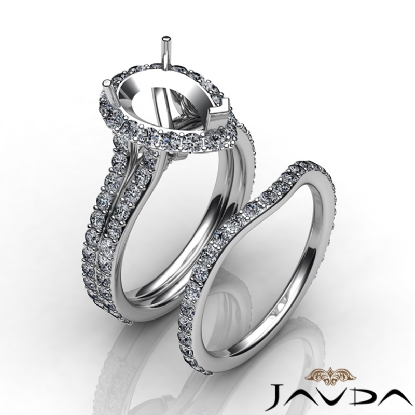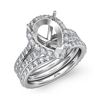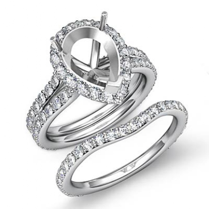 1.80C Pear Halo Diamond Semi Mount Engagement Wedding Ring Bridal Set 14K W Gold