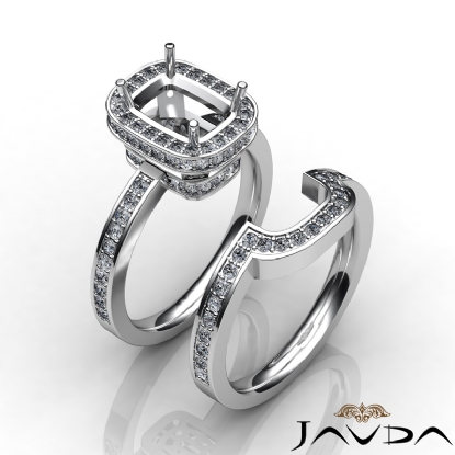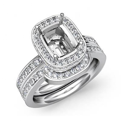 1.3Ct Diamond Cushion Wedding Band Semi Mount Ring 14K White Gold Bridal Setting