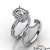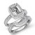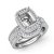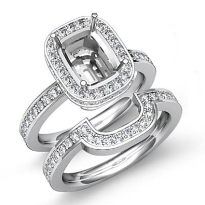 This cushion semi mount engagement ring and matching band feature round diamonds in pave setting along the halo and shank. Made in 14K white gold, this bridal set is 1.3ct.