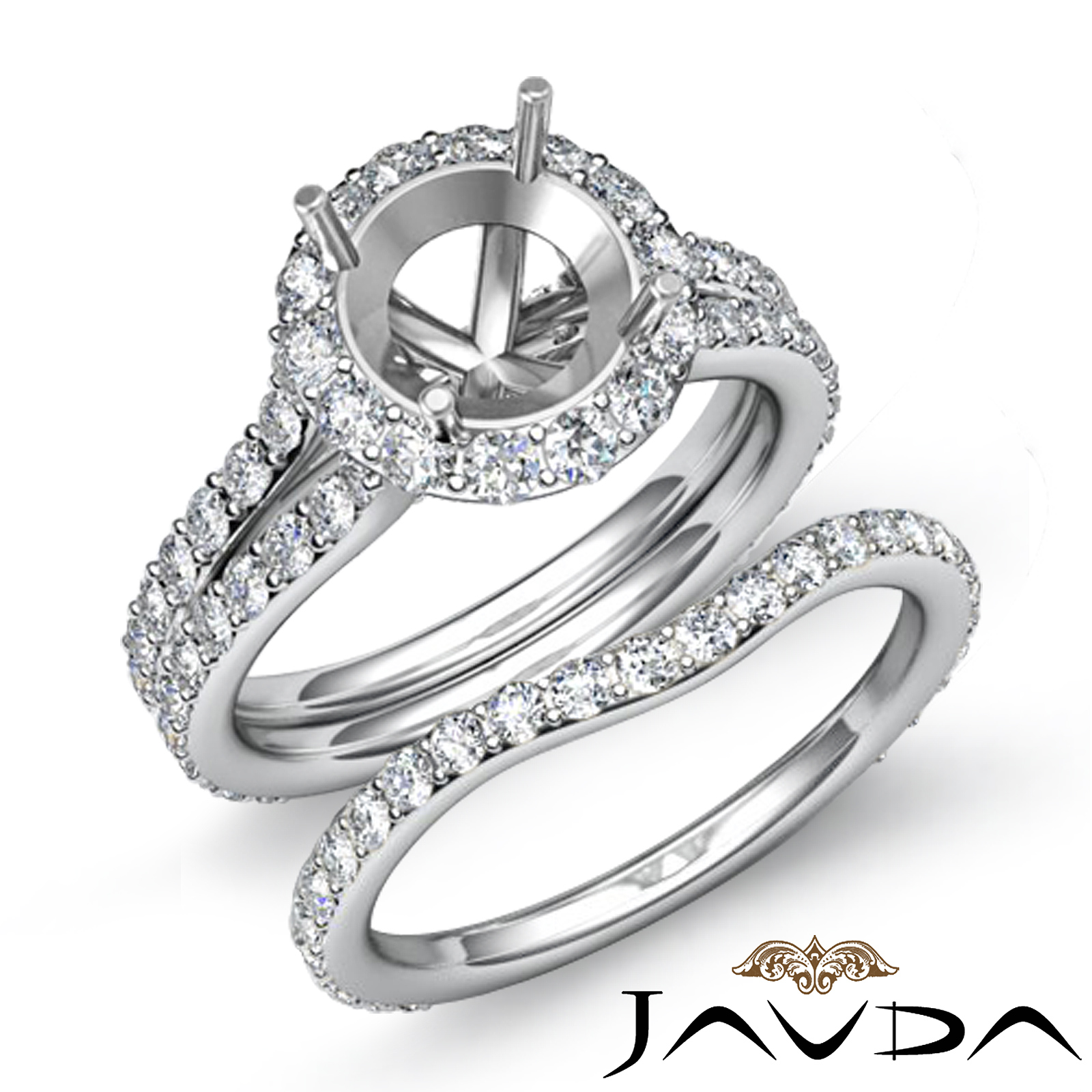 2.1C Round Halo Diamond Semi Mount Engagement Wedding Ring Bridal Set 14K W Gold