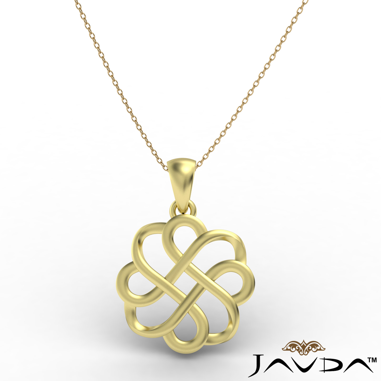 Traditional handmade celtic design gold pendant necklace crafted in 14k yellow gold. Dangle on 18 inch rolo chain that secures with polished bail.