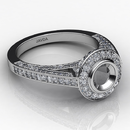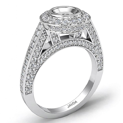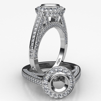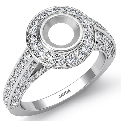 1.65Ct Halo Pave Setting Diamond Engagement Round Semi Mount Ring 14K White Gold
