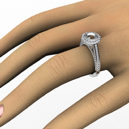 Graceful in design, this classic yet distinctive semi mount engagement ring is made in 14K white gold. It features 1.65ct. round diamonds in halo & along the shank.