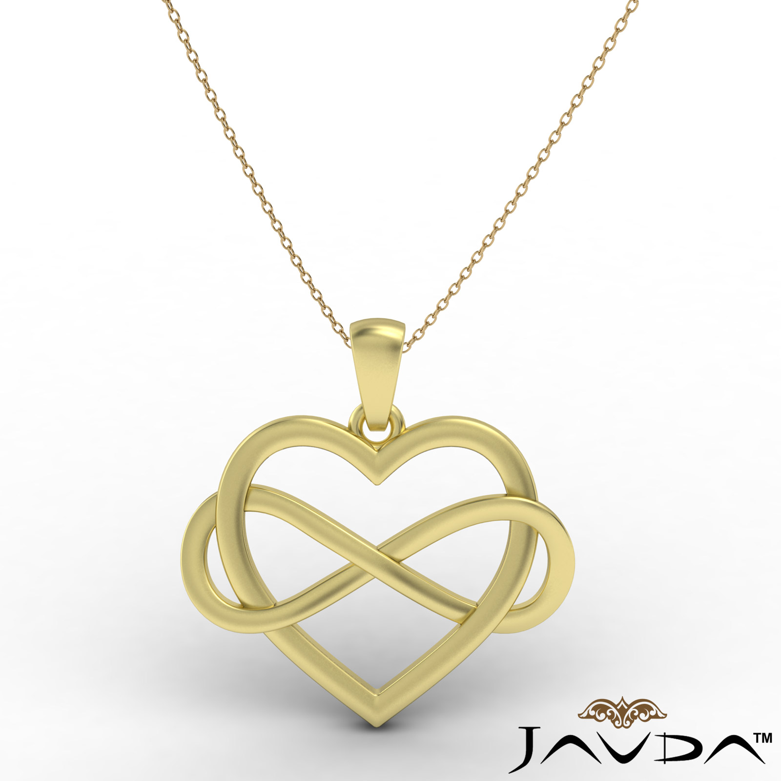 Infinity heart gold pendant necklace made in 14k yellow gold, hang on 18 inch rolo chain that secures with polished finished bail.