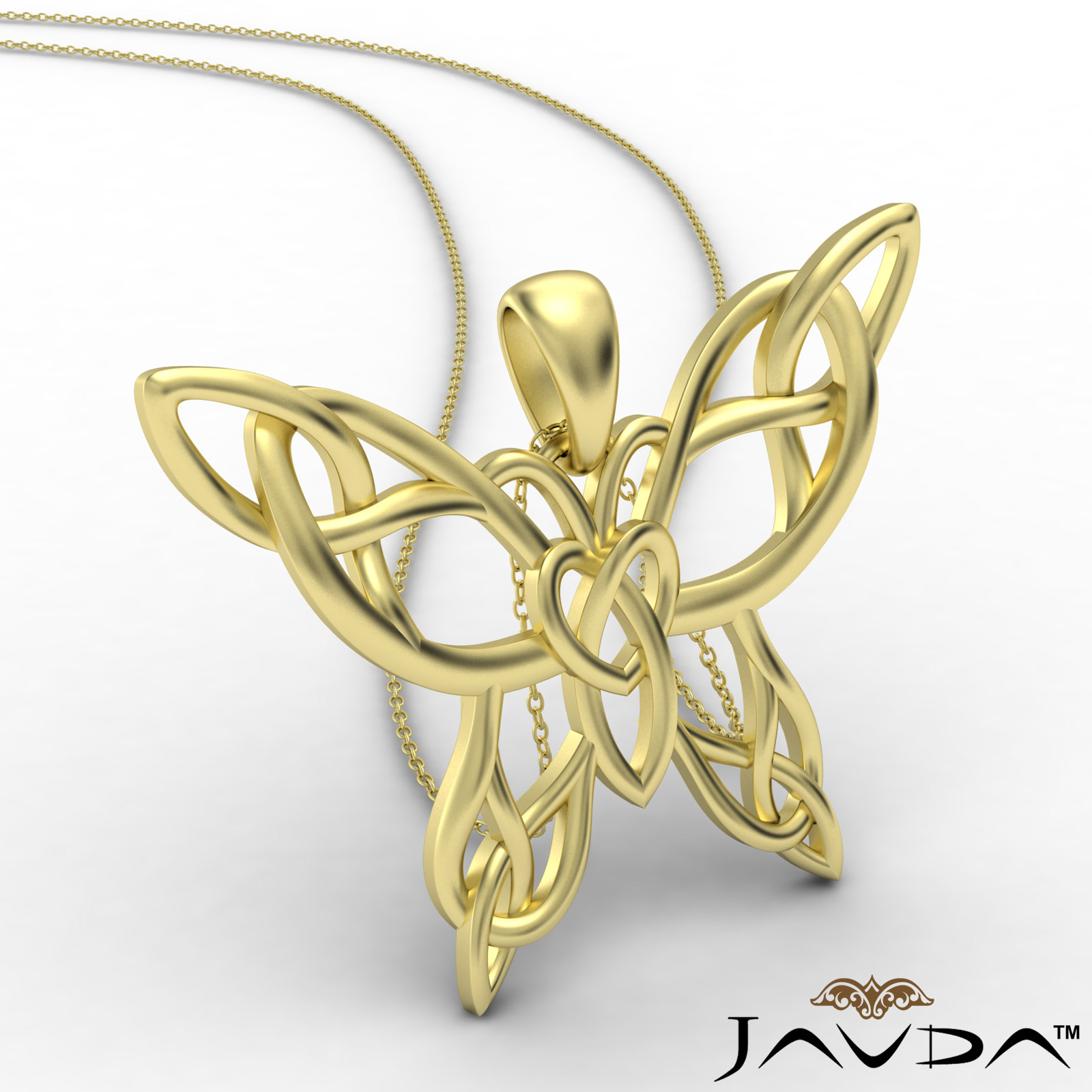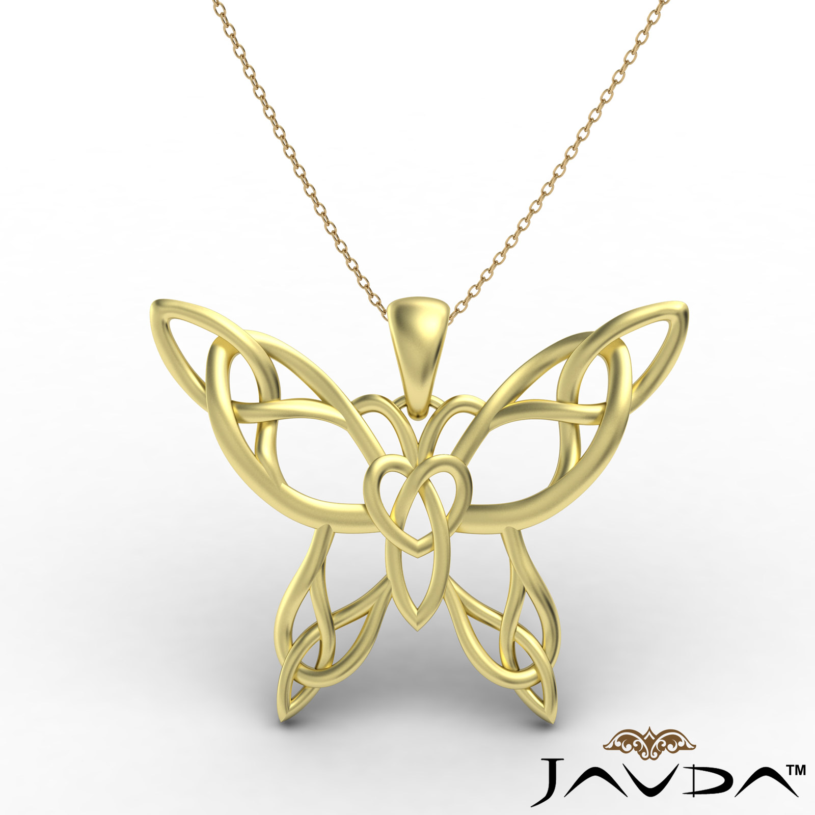 Celtic butterfly gold pendant necklace made in 14k yellow gold, hang on 18 inch rolo chain that secures with polished finished bail.