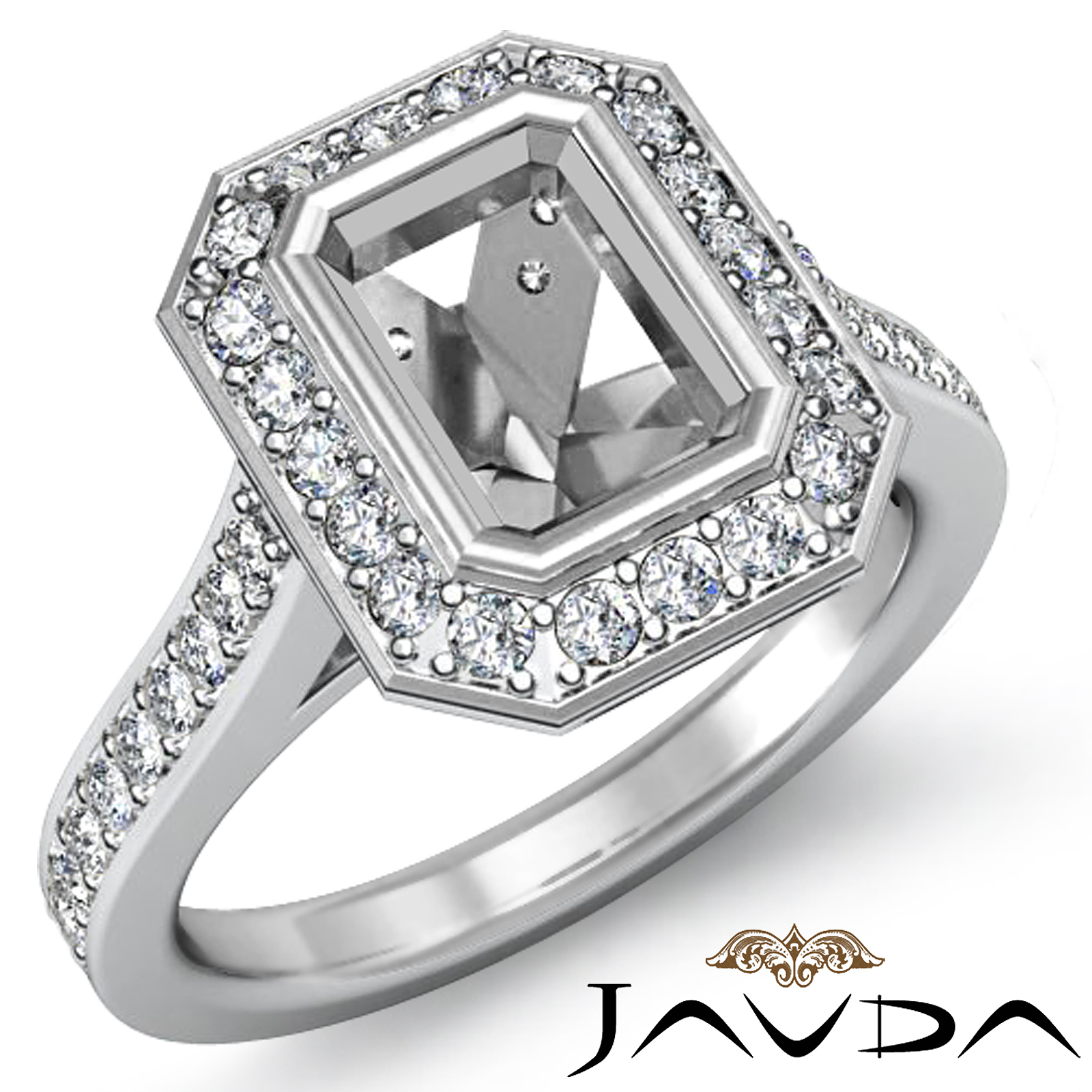 0.50Ct Diamond Engagement Ring Emerald Semi Mount Halo Setting 14K White Gold