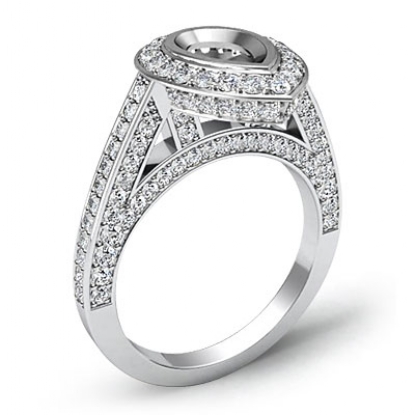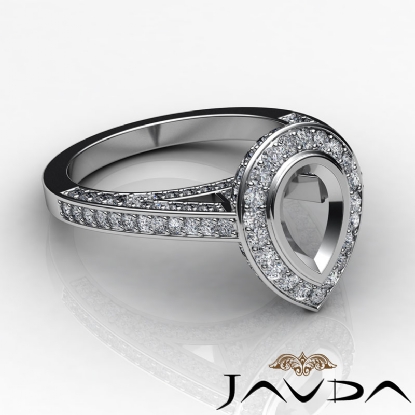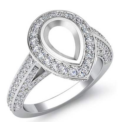 1.65 Ct Halo Pave Setting Diamond Engagement Pear Semi Mount Ring 14K White Gold