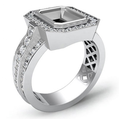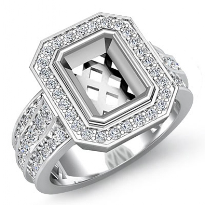 1.62Ct Diamond Engagement Ring 14k White Gold Emerald Semi Mount Halo Setting