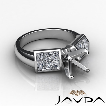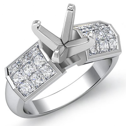 Intricately crafted, this 1.06ct. polished finish ring is made in 14K white gold. It features a multi shape semi mount, with princess cut diamonds in invisible setting dazzling along the shank.