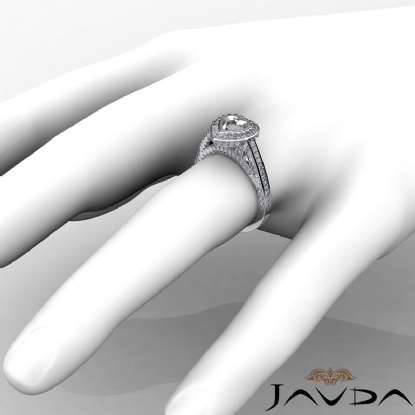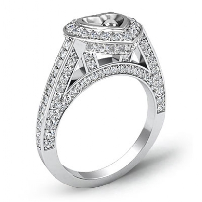 1.65Ct Halo Pave Setting Diamond Engagement Heart Semi Mount Ring 14K White Gold