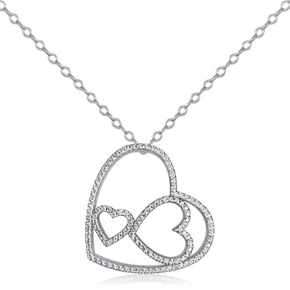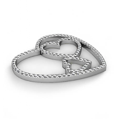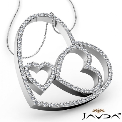 8.24 gram Round Diamond Heart Pendant polished 14K White Gold, One big heart shape contains two small heart shapes within it designed beutifuly with 1.04 Ct round diamond sets in pave setting.
