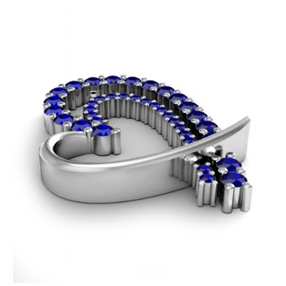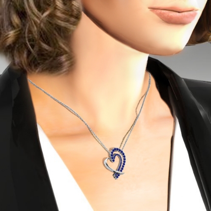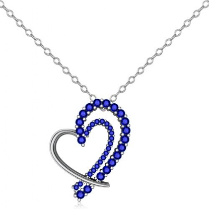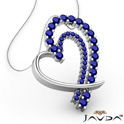 4.72 gram Round Diamond Fancy Heart Pendant 14K white Gold, Hollow heart shape designed with 0.68 Ct round-cut blue sapphire & diamond sets perfectly in prong setting.