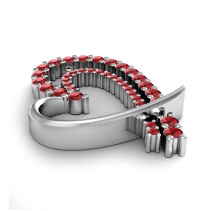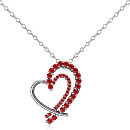 4.72 gram Round Diamond Fancy Heart Pendant 14K white Gold, Hollow heart shape designed with 0.68 Ct round pink gemstone & diamond sets perfectly in prong setting.