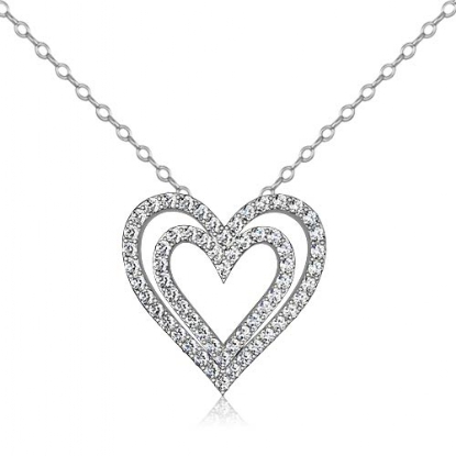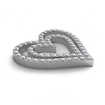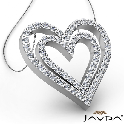 6.87 gram Round Diamond Heart Pendant 14K white Gold, Double heart shape designed with 1.36 Ct round diamond sets perfectly in pave setting.