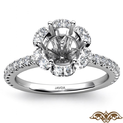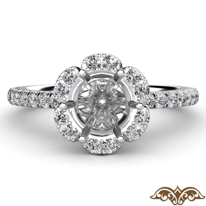 Flower Halo Round Semi Mount Diamond Engagement Ring French Pave 14k Gold 0.50Ct