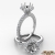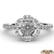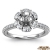 Gorgeous flower halo diamond engagement ring made from 14k white gold. This masterpiece features french U split pave set 0.50 carat side diamonds on shank and sparkling pave set halo surrounded round cut semi mount. Available in white gold, yellow gold, rose gold and platinum.