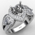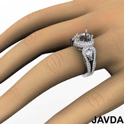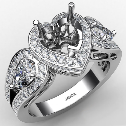 Heart Diamond Engagement Halo 3Stone Ring Set 14K White Gold Semi Mount 1.85Ct