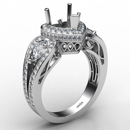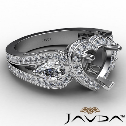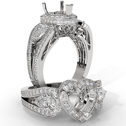 Capture the moment with this 14K white gold 3 Stone engagement ring, featuring a heart semi-mount halo of round diamonds. It showcases 1.85ct. of total round diamonds & 0.50ct. of side pear diamonds in prong setting beautifully placed on the ring's shank.