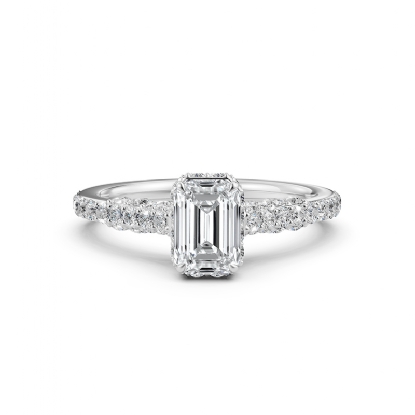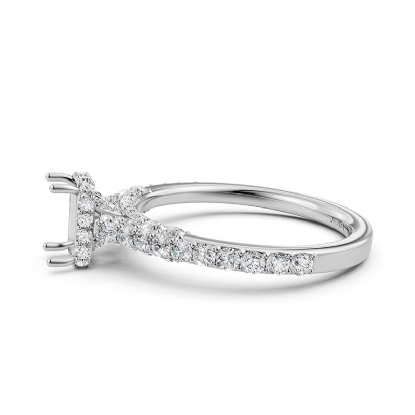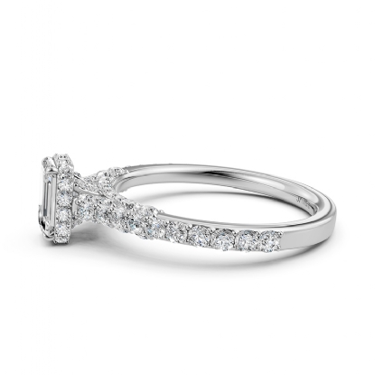 0.55 Carat Round Diamond Women Engagement & Anniversary Solid Ring made in 14 Karat White Gold. Diamonds are set in Pave Setting for Emerald Cut in a Semi Mount.