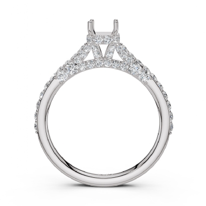 Diamond Engagement Pave Setting 14K White Gold Emerald Semi Mount Ring 0.55Ct