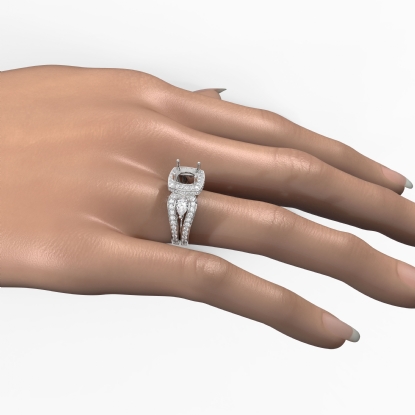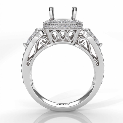 Cushion Diamond Engagement Halo 3Stone Ring 14K White Gold Semi Mount 1.85 Ctw.