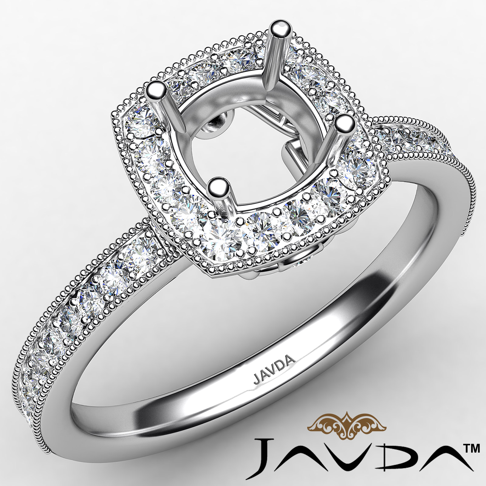 Halo Pave Set Diamond Engagement 14K White Gold Cushion Semi Mount Ring 0.50Ctw.