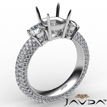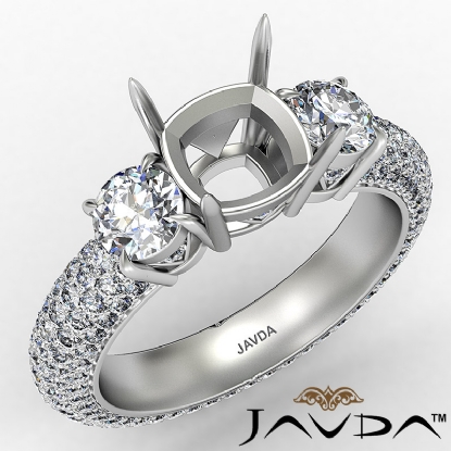 Three 3 Stone Cushion Diamond Engagement Ring 14k White Gold Semi Mount 2.6 Ctw.
