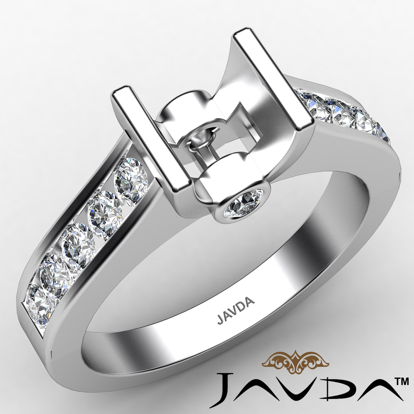 Undeniably striking, this 0.5ct. diamond engagement ring is made in 14K white gold. It features a cushion semi mount in bar setting with lustrous round diamonds along the shank in channel setting.
