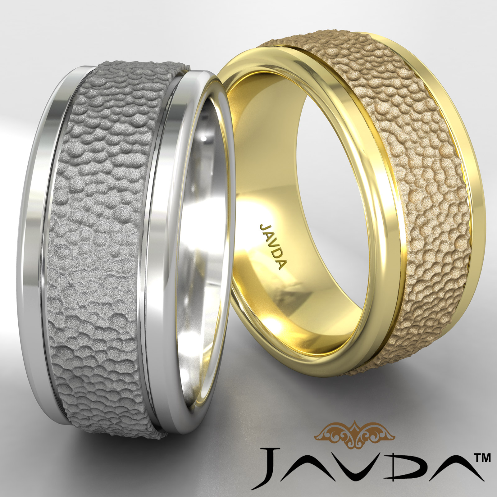 9.5mm Solid Hammered Finish Comfort Fit Men's Wedding Band 14k White Gold